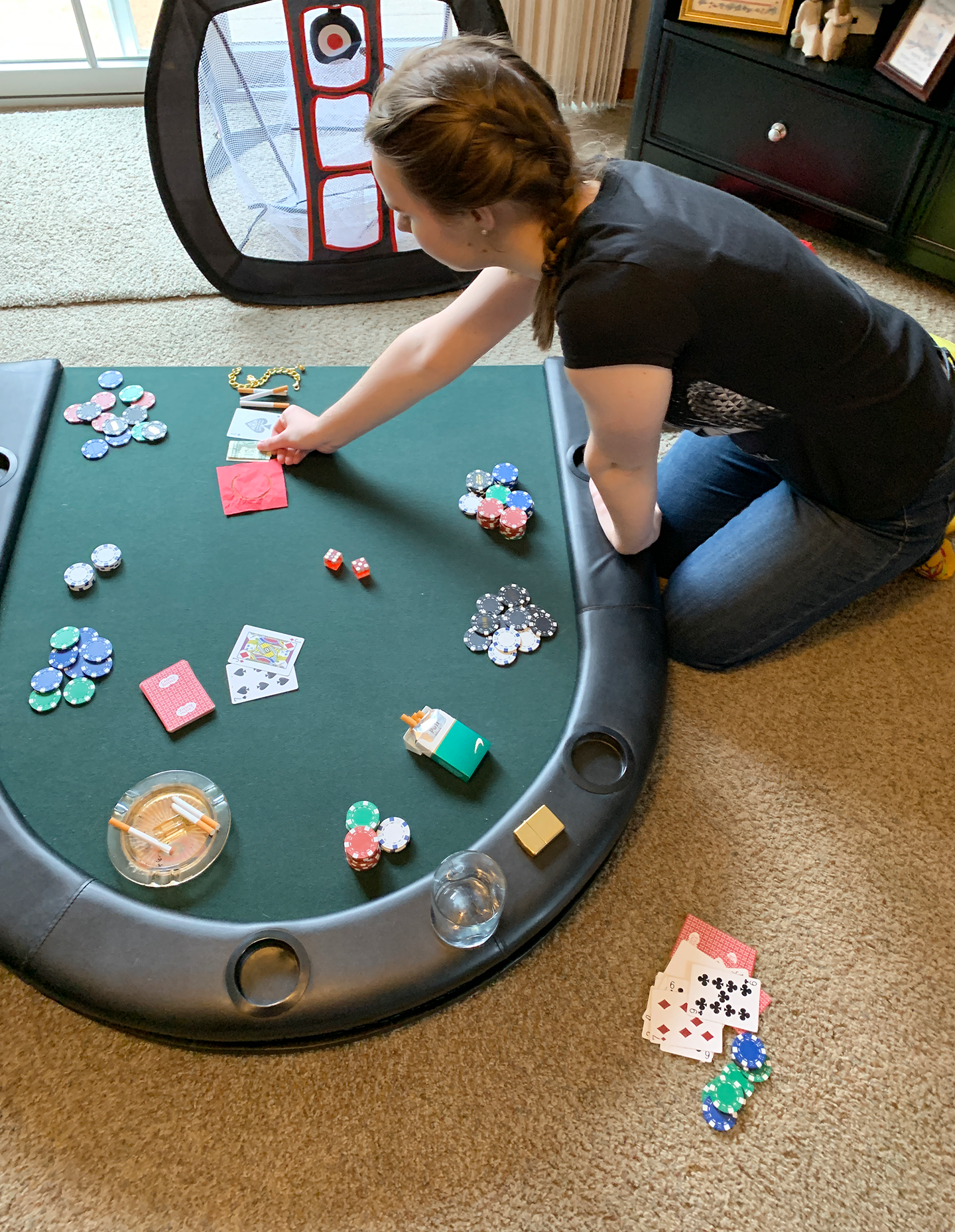 This project was particularly challenging, as it happened during the beginning of the pandemic. Since Penn State sent all of its students home, I had no access to our normal photo studio or workplace. I had to find and set up the props that would successfully create a cohesive message. In addition, I had to stand above the folded poker table and shoot the photos in my living room to get the correct layout shot. It was definitely an interesting (and learning) experience!Behind the Scenes